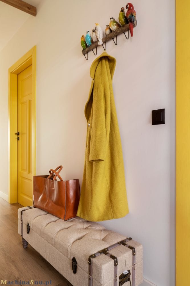 Projekt wnętrz domu szkieletowego o powierzchni 80 m² na warszawskich Włochach został przygotowany przez Machina Snu dla singla, który ceni indywidualność, kolory i ekstrawaganckie dodatki. Na tej funkcjonalnej przestrzeni udało się stworzyć komfortowy, spójny świat: salon, kuchnię, sypialnię, łazienkę, WC oraz wielofunkcyjny gabinet.