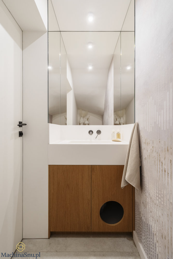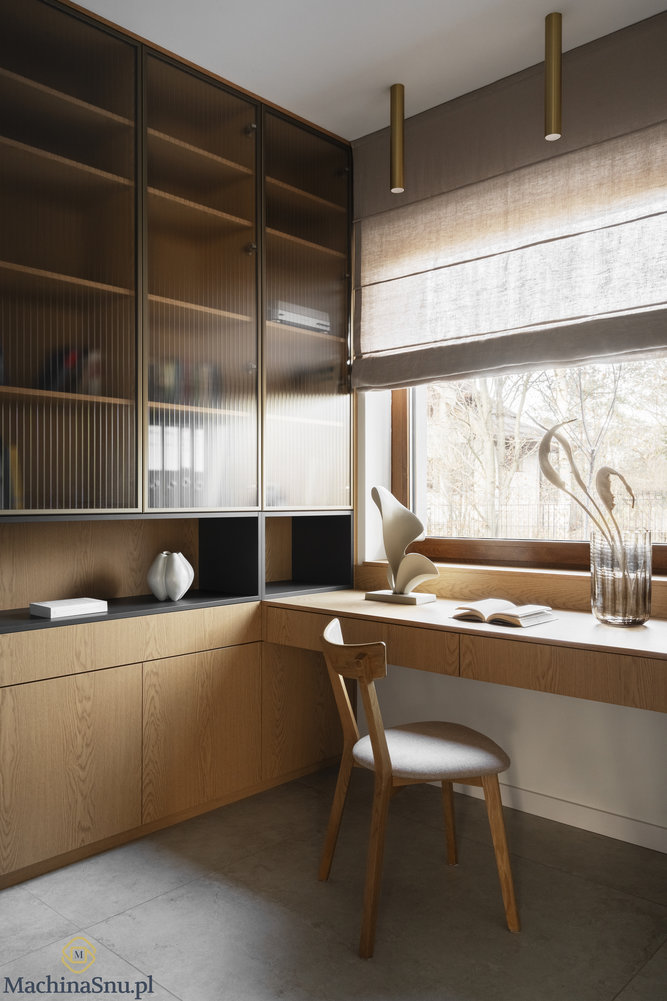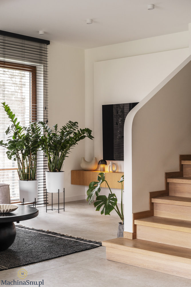 Ten dom to opowieść o tym, jak architektoniczna przeszkoda stała się bohaterem całego wnętrza. Młoda rodzina z małym dzieckiem i trzema czworonogami marzyła o przestrzeni jasnej, spokojnej i łatwej do utrzymania. Naszym zadaniem było przekształcić 110 m² w Milanówku w harmonijne schronienie w stylu Japandi.