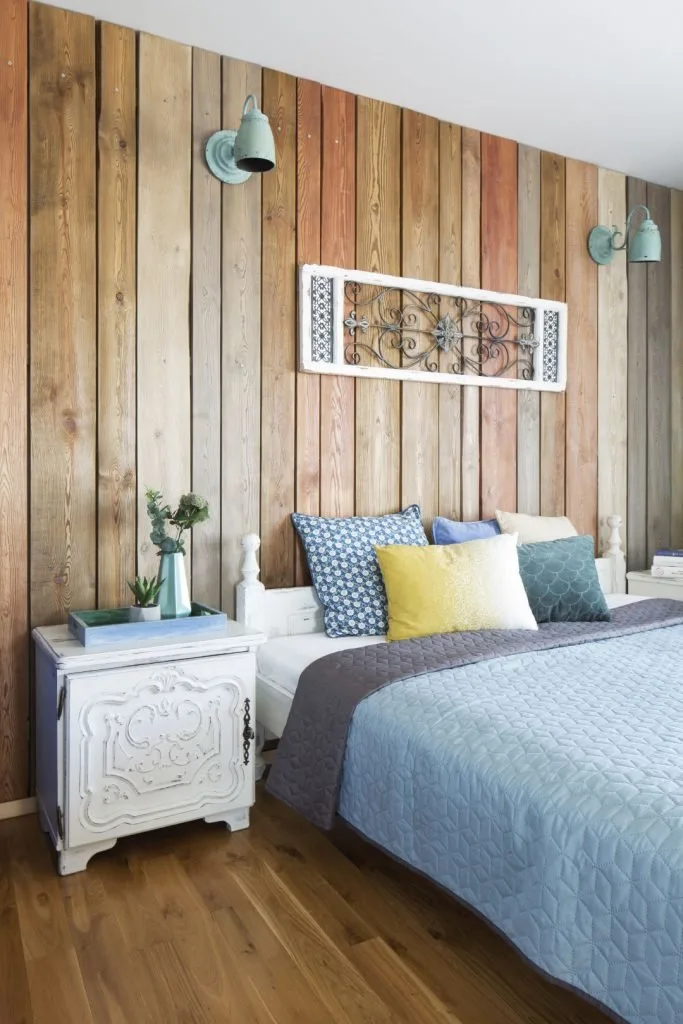 Sypialnia to spokojna enklawa dla dorosłych w pełnym ekspresji mieszkaniu. Stonowane kolory, miękkie tkaniny i ciepłe drewno kontrastują z intensywnością pozostałych pomieszczeń. To miejsce do wyciszenia, odpoczynku i oddechu po dniu pełnym aktywności – funkcjonalne, ale z duszą.