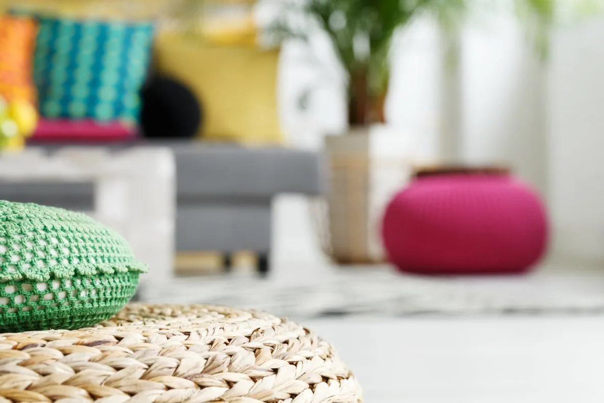 kolor w salonie,Kolorowe poduchy, kolorowe pufy,